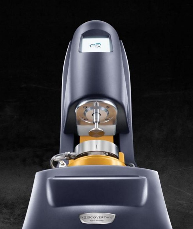 A rheometer measures the deformation and flow behavior of materials. The TA Instruments Discovery Hybrid Rheometer is a highly advanced and versatile instrument. It combines a patented drag cup motor, a second generation magnetic bearing, force rebalance transducer technology (FRT), and new patent pending Optical Encoder Dual Reader and True Position Sensor (TPS) into a single-head Hybrid rheometer. Their patented Smart Swap® geometry and temperature systems allow for easy switching and automatic detection of experimental geometries and accessories.